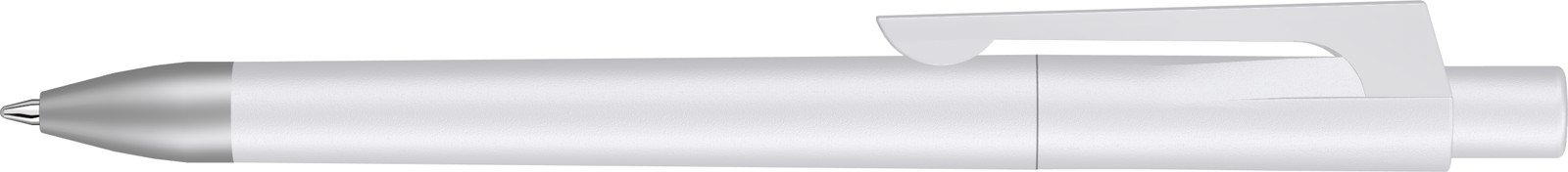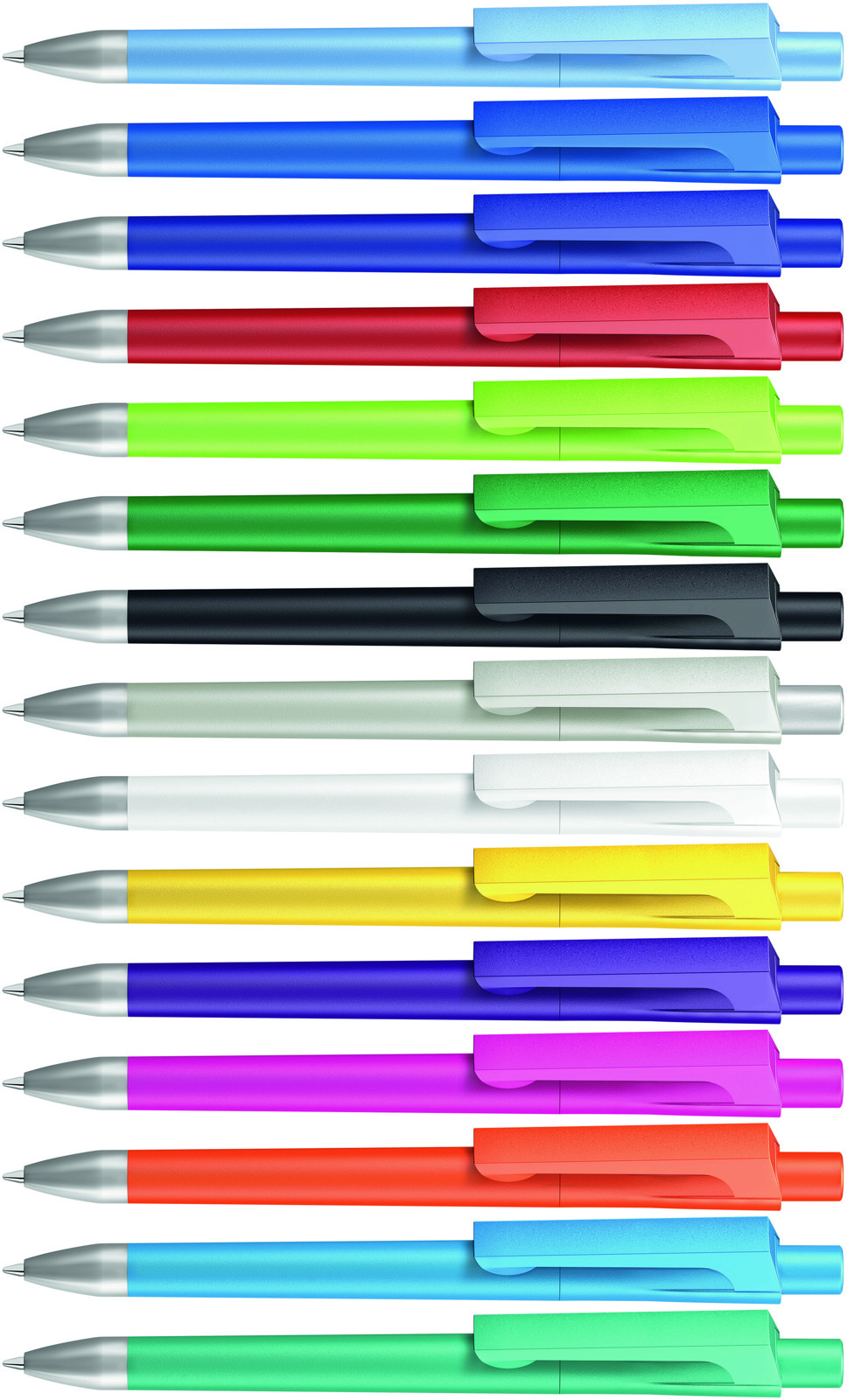 Dreh-Kugelschreiber mit integriertem Stylus und ultradünnem Gehäuse aus Aluminium mit geschmeidigem Metallic-Finish in verschiedenen Farben und farblich passendem Stylus. Kontrastdetails und Ringe in Silber. Blaue Tinte.