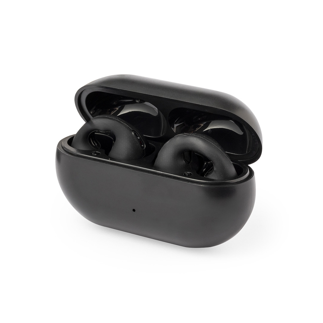 Offene Kopfhörer mit Bluetooth® 5.3-Verbindung und Freisprechfunktion. Perfekter Sitz in den Ohren durch einen praktischen Clip, der ein komfortables Hörerlebnis bietet. In der Hörmuschel integrierte Touch-Control-Taste, mit passender Ladestation und 200-mAh-Akku, Typ-C-Anschluss und Ladekabel im Lieferumfang. Präsentiert in einer individuellen Kraft-Design-Box, mit Bedienungsanleitung in Englisch und Spanisch.Hergestellt nach RoHS-Standards und in Übereinstimmung mit den folgenden Sicherheitsanforderungen:Überhitzungsschutzsystem.Überladungsschutzsystem.Blockiersystem zur Vermeidung von Kurzschlüssen. Bluetooth Anschluss. Batterie 30 mAh/ Aufladestation 200 mAh