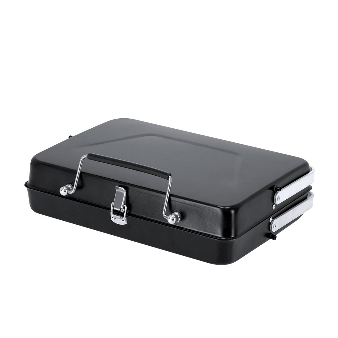 Faltbare Edelstahl-Grill mit mattem Finish. Er lässt sich zu einer Aktentasche falten, um den Transport zu erleichtern. Er verfügt über einen klappbaren Grill, was seine Nutzung funktionaler macht. Faltbare, rutschfeste Stützbeine, die Sicherheit und Stabilität bieten. Ideale Wahl für Outdoor-Aktivitäten, Veranstaltungen, Mahlzeiten mit Freunden oder Familie. Faltbar