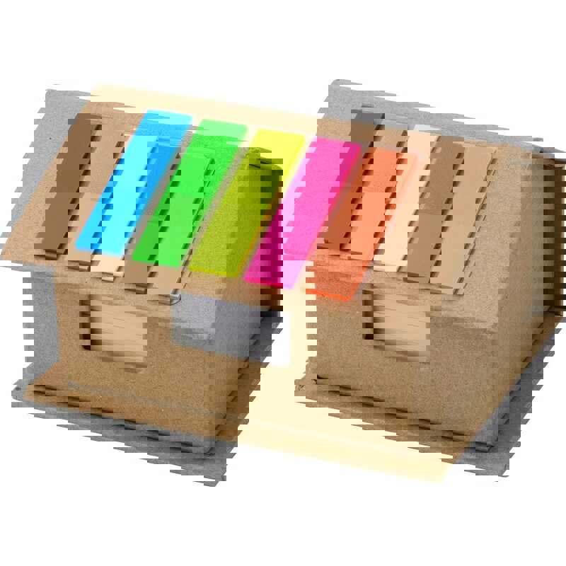 Haftnotizblock mit farblich passendem Kugelschreiber aus Recyclingkarton sowie originellem, zweifarbigem Design. Soft-Touch-Cover aus robustem Recyclingkarton mit selbstschließender Lasche in passender Farbe. Mit Stifthalter und 70 Blättern sowie 25 großen, 25 mittlelgroßen und 100 Mini-Haftnotizen. 70 Blätter Notizblock. 25 Haftnotizen 7,6 x 9 cm. 25 Haftnotizen 3,8 x 6 cm. 100 Mini Haftnotizen 1,2 x 4,8 cm. Reclycling Pappe Kugelschreiber Inklusive