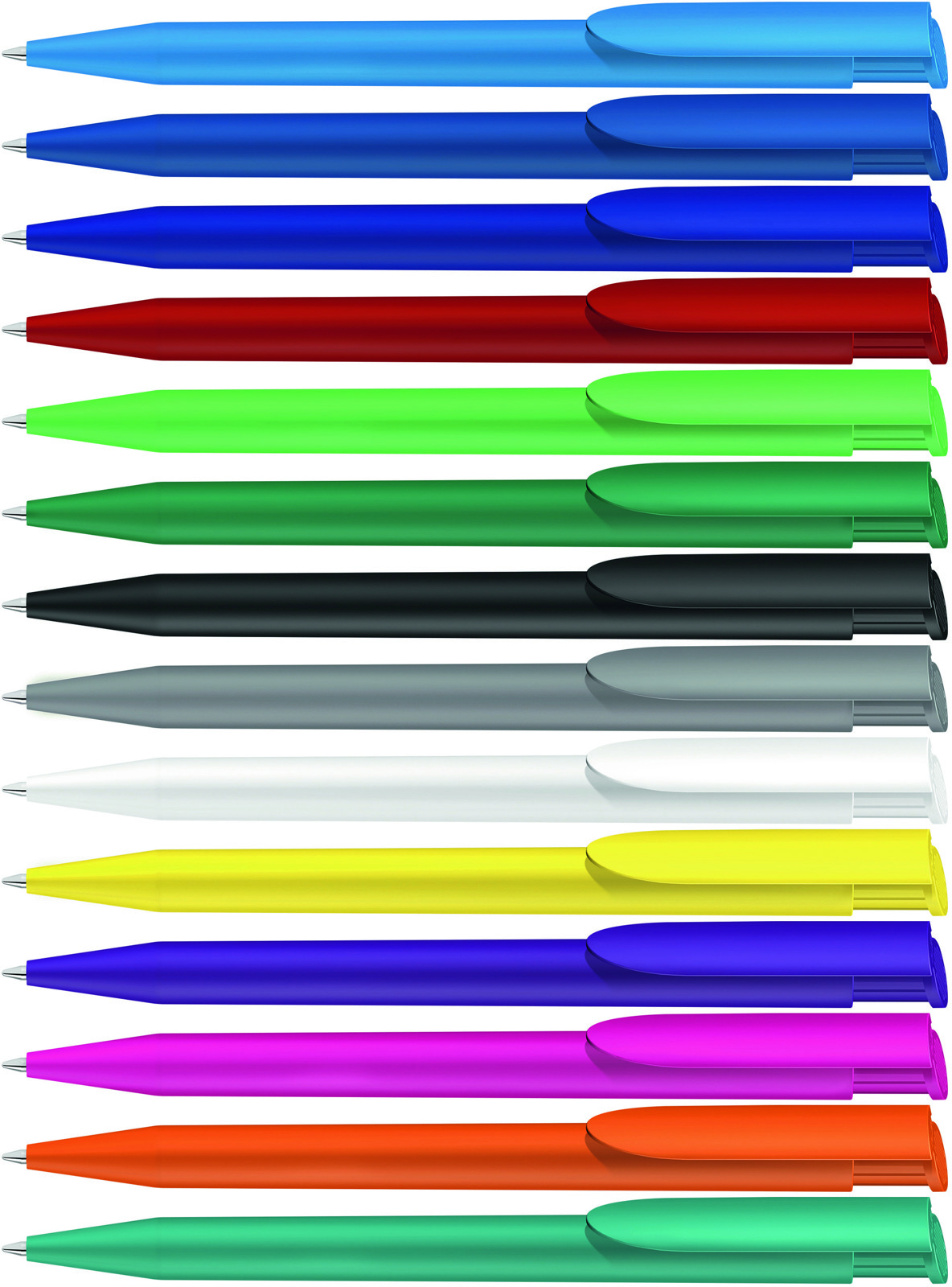 Druckkugelschreiber mit gedeckt mattem Gehäuse und Clipdrücker.