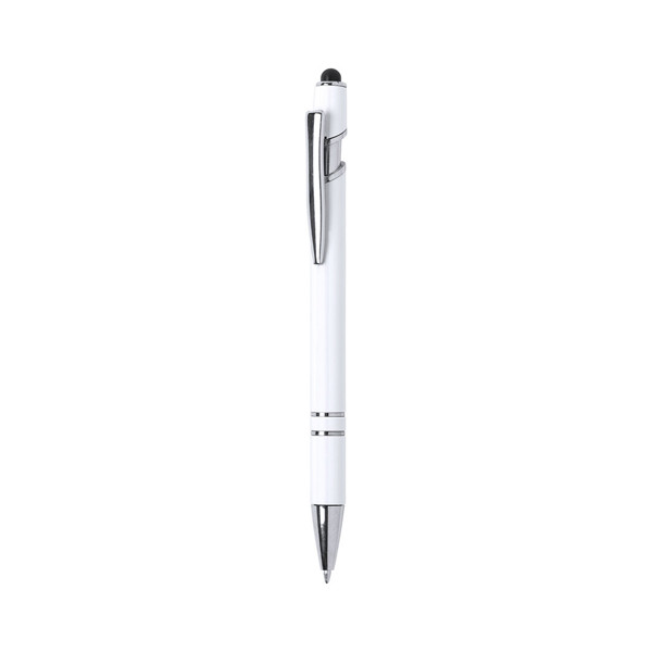 Dreh-Kugelschreiber mit integriertem Stylus und ultradünnem Gehäuse aus Aluminium mit geschmeidigem Metallic-Finish in verschiedenen Farben und farblich passendem Stylus. Kontrastdetails und Ringe in Silber. Blaue Tinte.