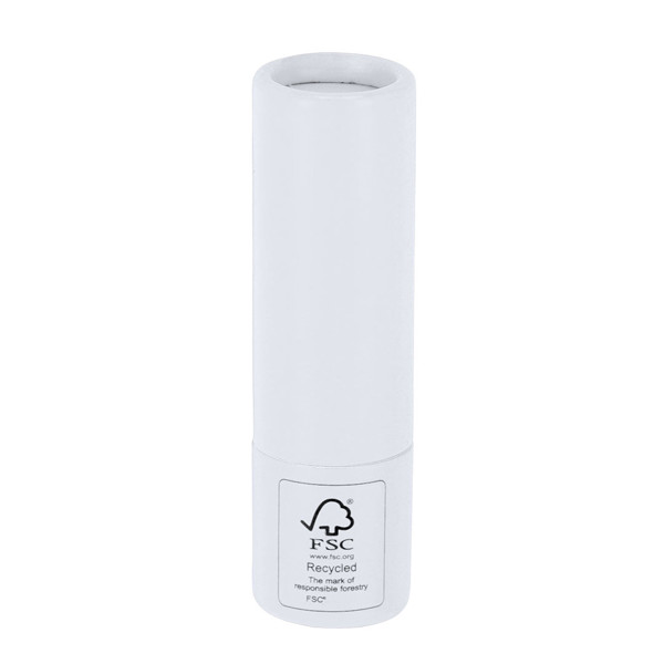 Lippenbalsam aus FSC-zertifiziertem recyceltem Karton. Vanilleduft. SPF15-Schutz. Dermatologisch getestet. FSC®-Label auf der Verpackung. SPF15. Vanille Aroma