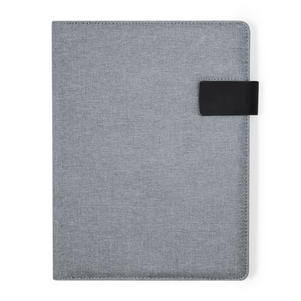 Praktischer Ordner aus RPET 600D. Mit einem effizienten Innendesign, das Fächer für 4 Karten, 3 elastische Taschen für mobile Geräte und viel Platz für Papierblätter umfasst. Dieser Organizer verfügt außerdem über einen praktischen Stifthalter und einen Notizblock mit 20 Seiten im Einzelstreifen-Design. Dank der magnetischen Klappe lässt es sich sicher verschlossen halten. Erhältlich in stilvollen Farben und einzeln in einer recycelten Tasche präsentiert. RPET-Material wird aus recyceltem Kunststoff hergestellt und fördert so die Wiederverwendung von Kunststoffabfällen und trägt zur Nachhaltigkeit des Planeten bei. 20 Blätter Notizblock