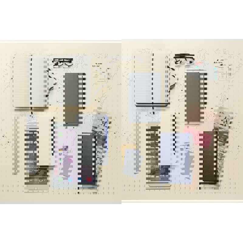 A5-Notizblock mit festem Einband aus stabilem Recyclingkarton. Mit 100 einfachen weißen Blättern und Gummiband zum Verschließen. Hardcover-Abdeckung. 96 Blätter