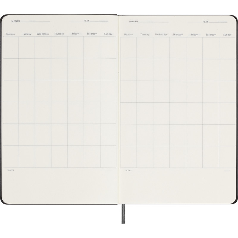 MOLESKINE UNDATED planer XL (ca. A5), 12 anpassbare Monatseinteilungen, 5 Wochen pro Monat, fester Einband, Wocheneinteilung (208 S.), Lesebändchen und Gummiband zum Verschließen