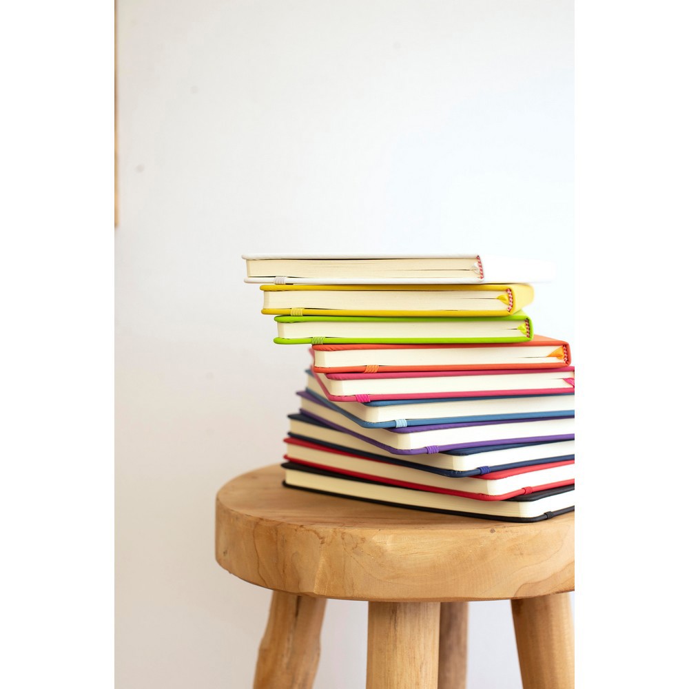 Notizbuch im Format ca. A5, mit 96 linierten Blättern (192 Seiten), Lesezeichenband zum bequemen Markieren der letzten Seite oder wichtiger Notizen, zusätzlicher Verschluss in Form eines farblich abgestimmten Gummibandes, fester Einband aus PU