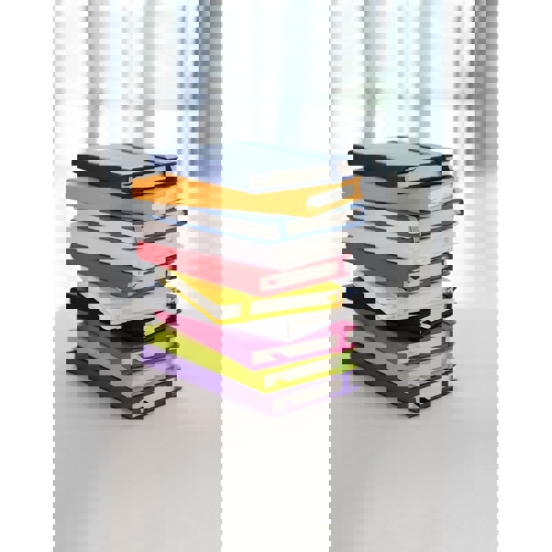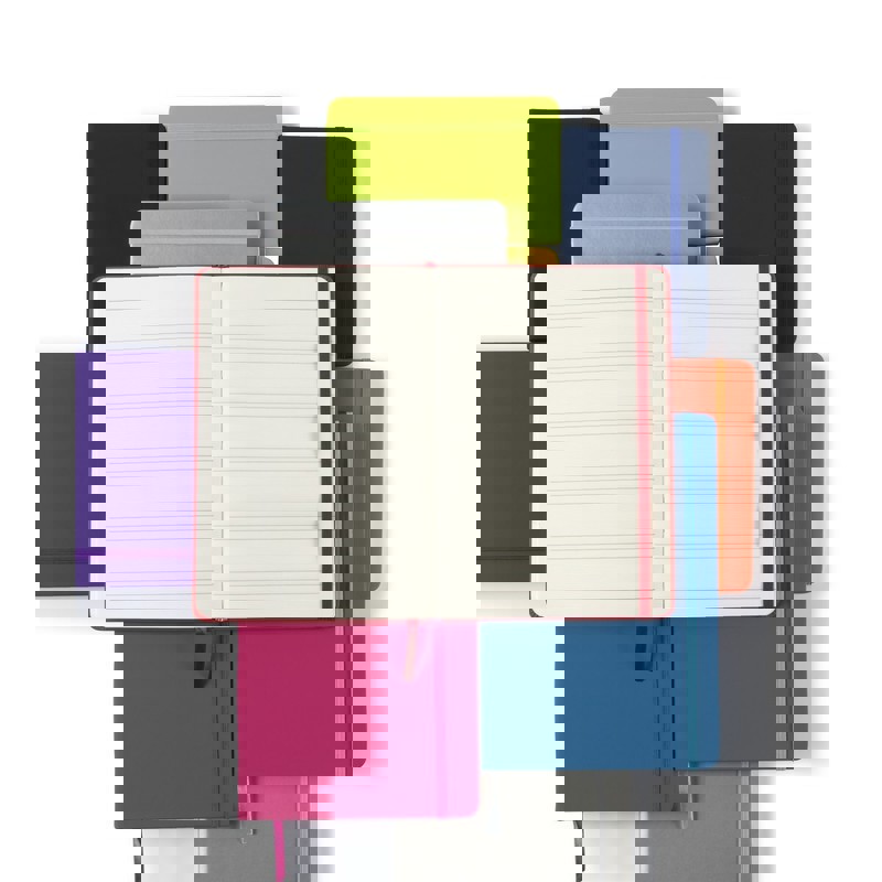 Mini-Ring-Notizbuch in auffälligen Farben mit Mini-Kugelschreiber auf dem Deckel und Lanyard mit farblich passendem abnehmbarem Detail. Erhältlich in 60 linierten Blätter. 60 Blätter. Kugelschreiber Inklusive