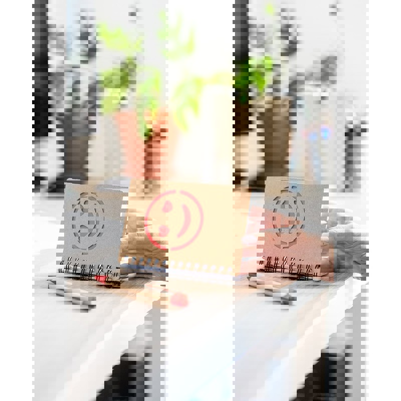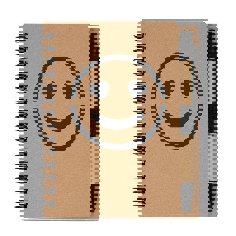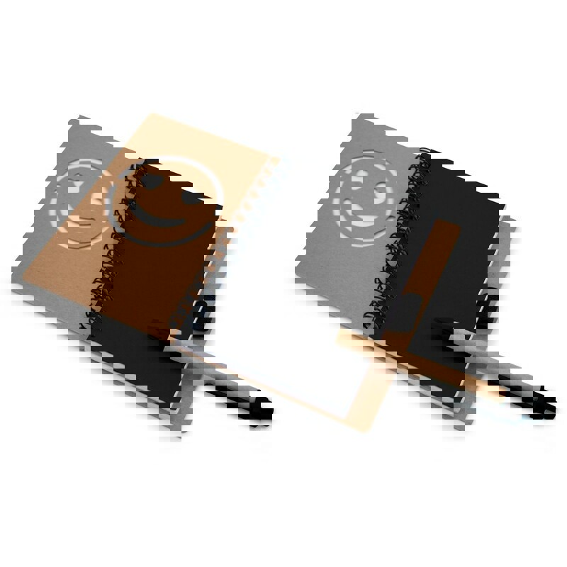 Notizbuch ca. B7 "lächelndes Gesicht" mit Kugelschreiber | Dylan - schwarz