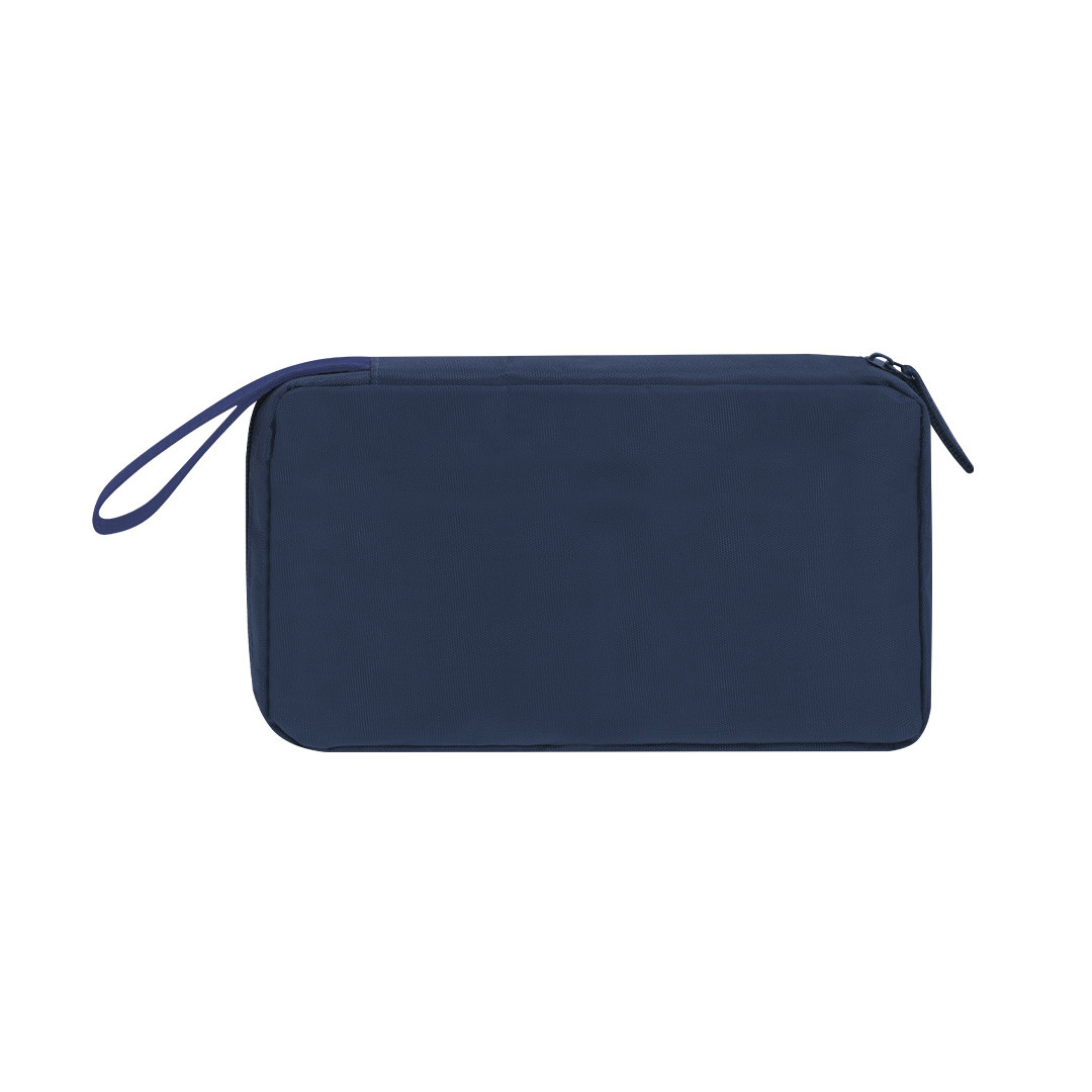 Organizer-Hülle aus 900D RPET. Hauptfach mit doppeltem Metallreißverschluss für vollständige Öffnung und mehreren Innenfächern, ideal zur Aufbewahrung von Kabeln: 3 Fächer mit Gummibändern und 1 Fach mit Reißverschluss. Enthält außerdem eine Außentasche mit unsichtbarem Reißverschluss und einen Griff für einfaches Tragen. Mit RPET-Label.Das RPET-Material wird aus recyceltem Kunststoff hergestellt und fördert somit die Wiederverwendung von Plastikabfällen und trägt zur Nachhaltigkeit des Planeten bei.