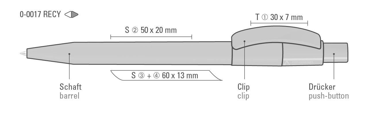 Druckkugelschreiber mit gedeckt mattem Kunststoffgehäuse aus 100% recyceltem Post-Consumer-Kunststoff, glänzendem Bogenclip und Drücker. Das Modell ist mit dem Recyclingzeichen gekennzeichnet. Drücker optional in verschiedenen gedeckt glänzenden Farben (Standard ABS) erhältlich. Dank der europäischen und ClimatePartner-zertifizierten Produktion leistet der uma PIXEL RECY einen zusätzlichen nachhaltigen Beitrag zur Schonung der Umwelt. Aufgrund der Besonderheit des Materials (Post-Consumer Recycled Plastic) sind produktionstechnische Farbschwankungen gegeben.