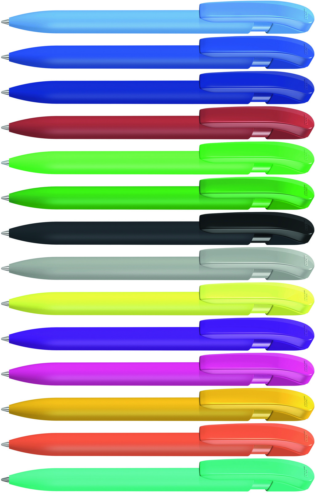 Kugelschreiber aus strapazierfähigem ABS mit Druckknopfmechanik. Originelles zweifarbiges Design mit kräftigen und abwechslungsreichen Farben in glatter Ausführung, mit passendem Komfortgriff. Blaue Tinte.