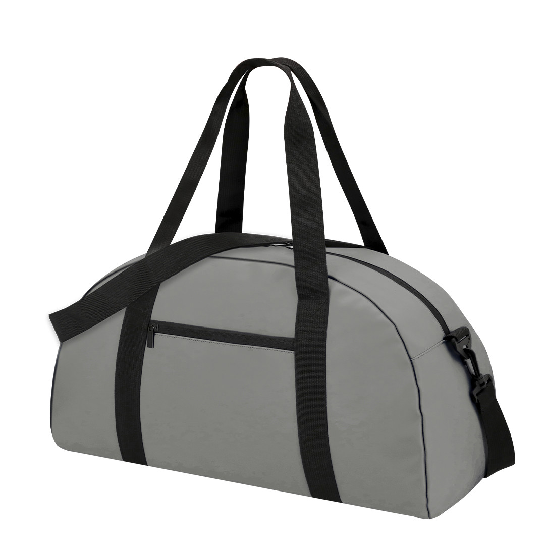 Mehrzwecktasche aus widerstandsfähigem Polyester 600D Material und zweifarbigem Design, Körper in grauer Farbe und Details in schwarz. Hauptfach mit doppelten Reißverschlusszügen, strapazierfähigen, nylonverstärkten Griffen und einer seitlichen Netztasche. Mit verstellbarem Schulterriemen.