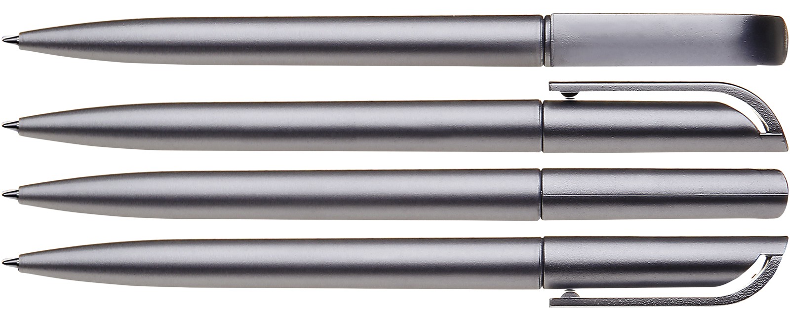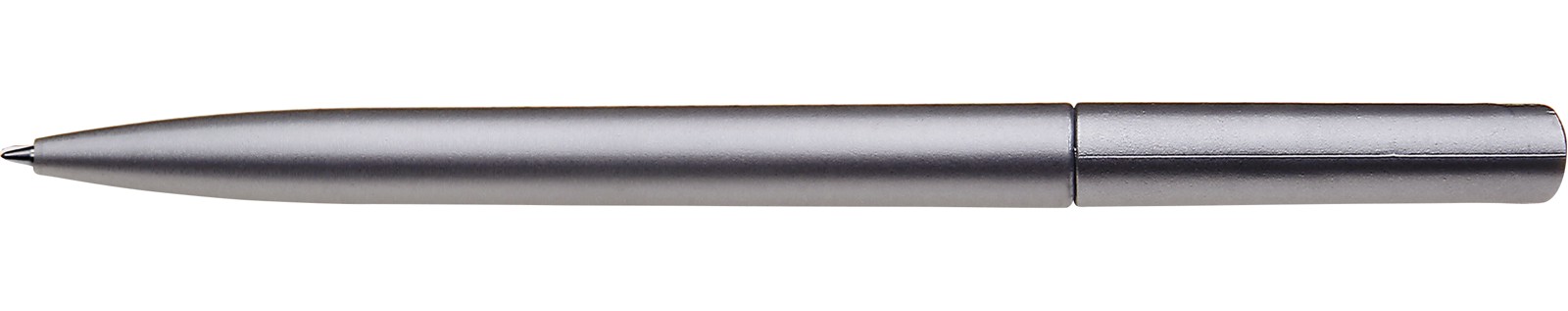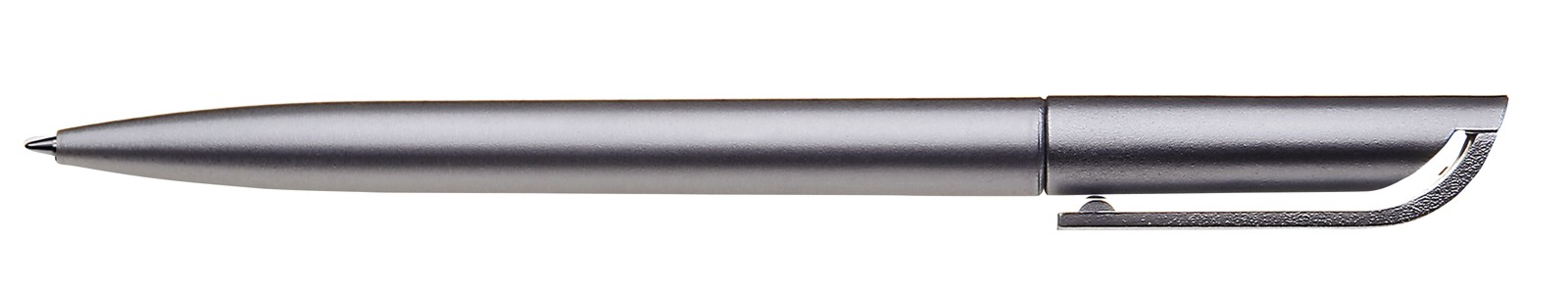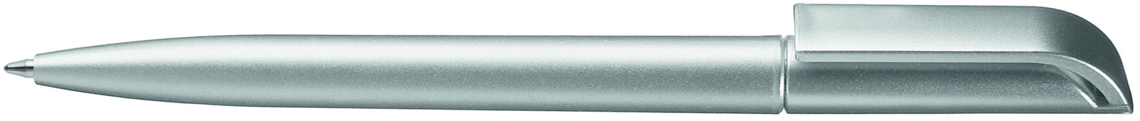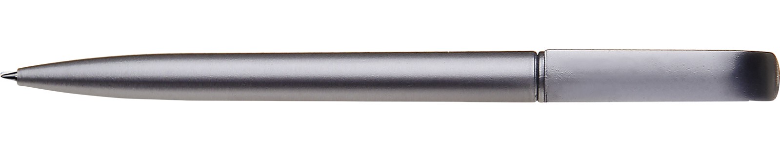 Drehkugelschreiber mit gedeckt mattem Gehäuse in silber.