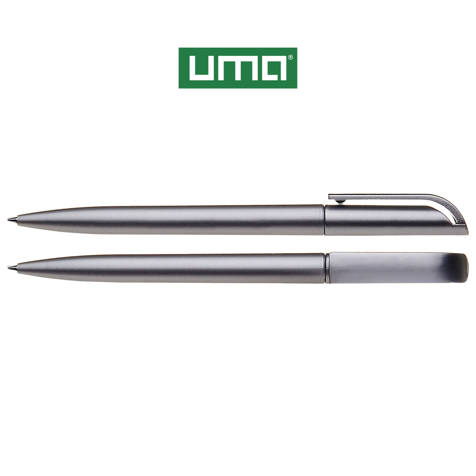 Dreh-Kugelschreiber mit integriertem Stylus und ultradünnem Gehäuse aus Aluminium mit geschmeidigem Metallic-Finish in verschiedenen Farben und farblich passendem Stylus. Kontrastdetails und Ringe in Silber. Blaue Tinte.