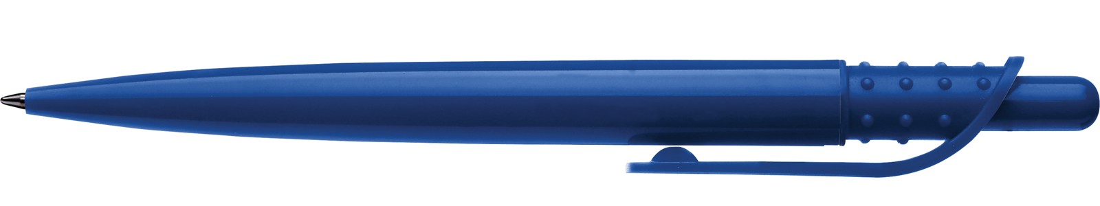 Druckkugelschreiber mit gedeckt glänzendem Gehäuse und großem Clip an genoppter Clipaufhängung.