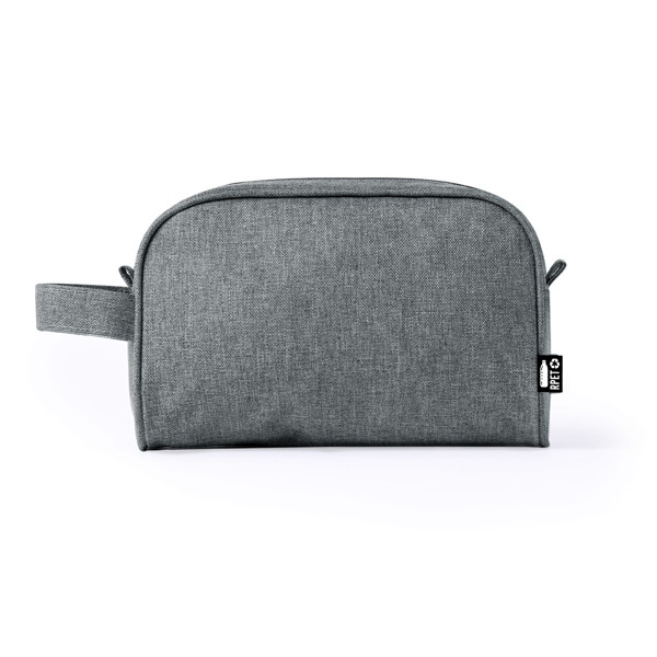 Multi-purpose beauty bag in durable 600D RPET. With zip closure and metal puller. Available in a wide range of stylish colours, with RPET label.RPET material is made from recycled plastic, thus promoting the reuse of plastic waste and helping the sustainability of the planet.
