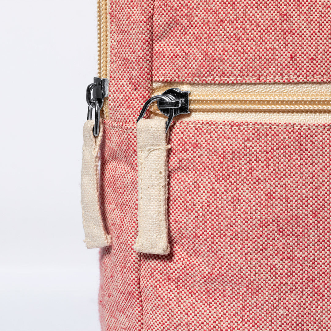 Nature line document holder made of recycled cotton GRS 275g/m2. Main compartment and outside pocket with zipper closure and recycled cotton logo on the outside label. GRS (Global Recycled Standard) certification available, guaranteeing the recycled origin of the material used to manufacture the product. Available in a wide range of colors.