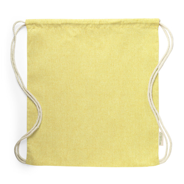 Nature line drawstring backpack in recycled cotton material, 120 g/m2. Self-closing strings in cotton, with eco label on one side and available in a wide range of nature colours. Resistance up to 9kg weight.