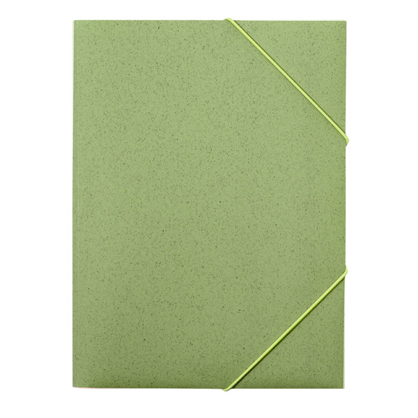 Folder made from wheat straw. Flexible cover, with special inner compartment to hold sheets of paper and elastic band closure. Available in several colours.Wheat straw promotes the use of natural raw materials, thus reducing pollutant emissions.