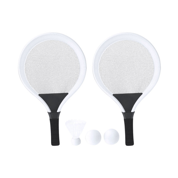Badminton set including 2 shuttlecocks and 2 badminton rackets. Comes with its own plastic carry bag with shoulder strap.