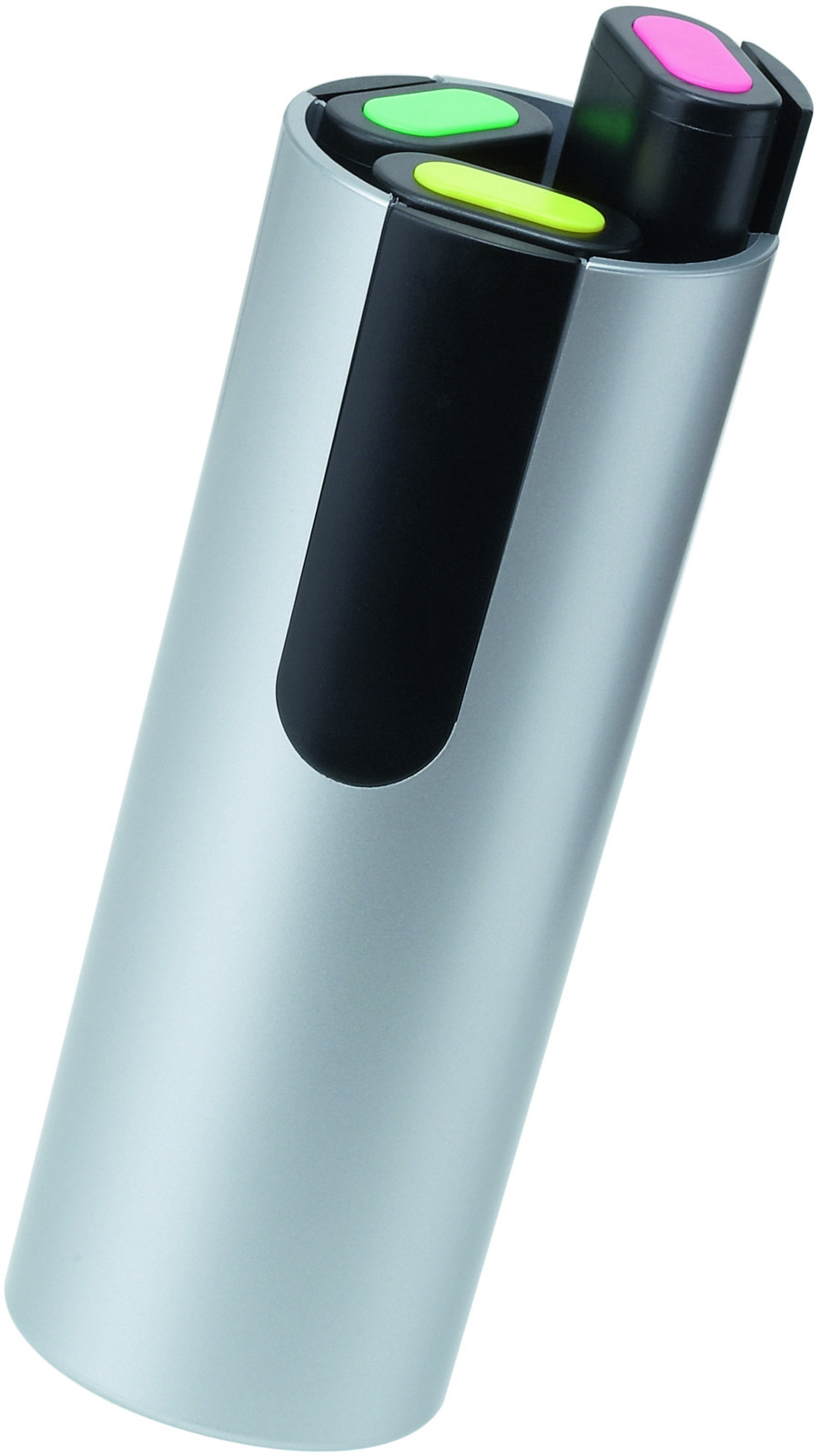 Silver set box in quiver form with 3 highlighters (0-0200) in different writing colours (yellow/green/magenta). Also available with adhesive sleeve - price on request.