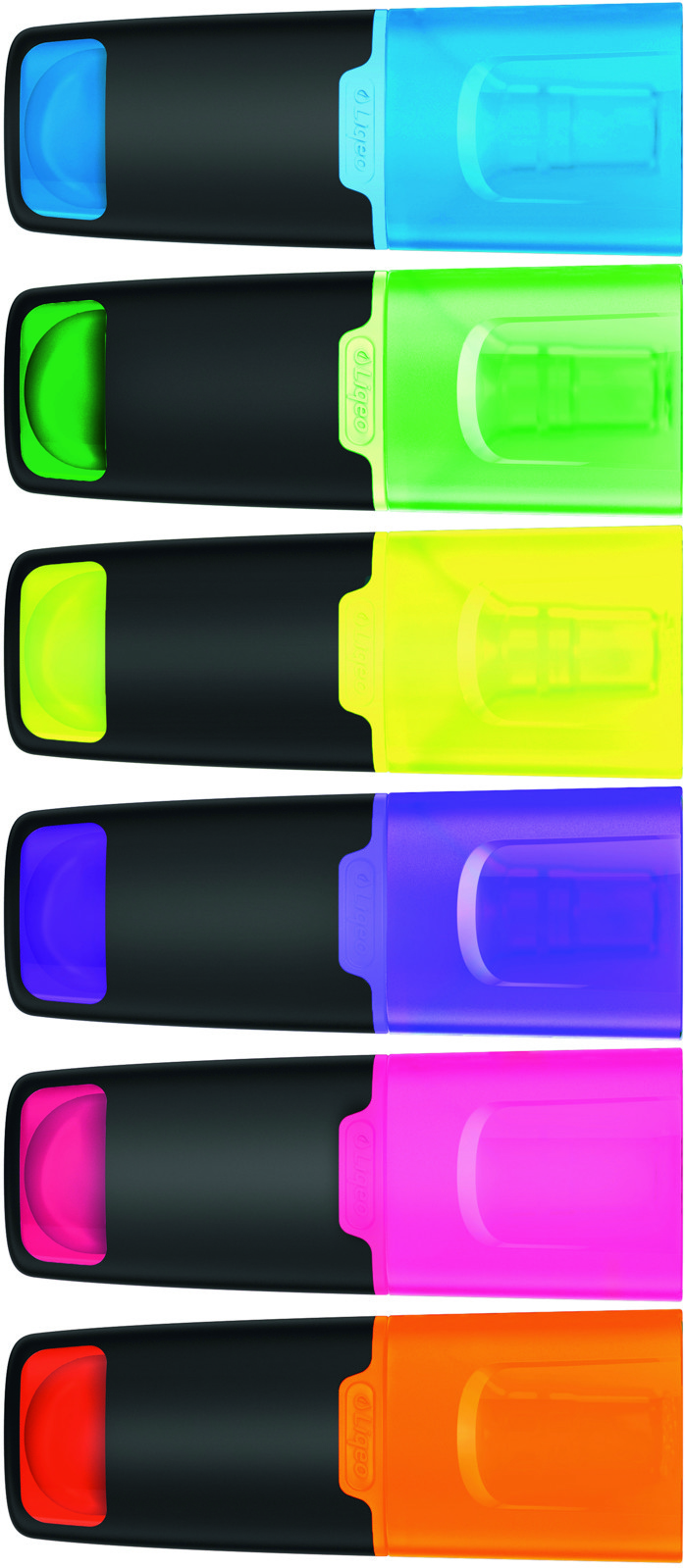 Fluorescent marker minimalist design in fun colors, with body and hood in translucent finish.