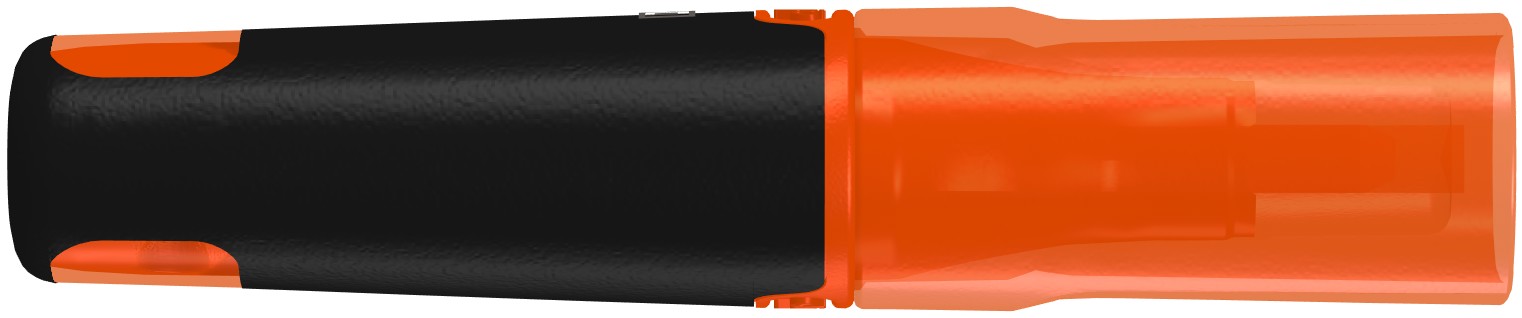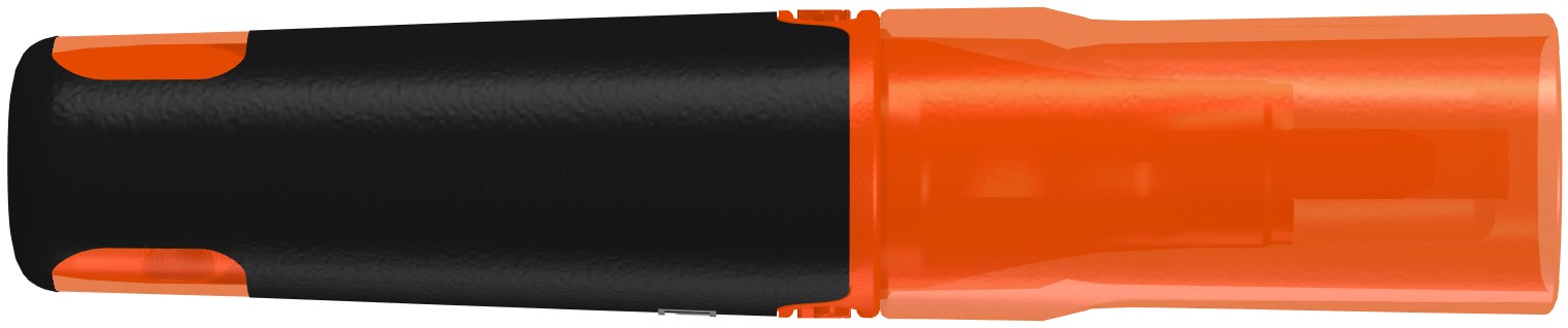 Liquid highlighter MINI with black barrel and transparent cap in writing colour.