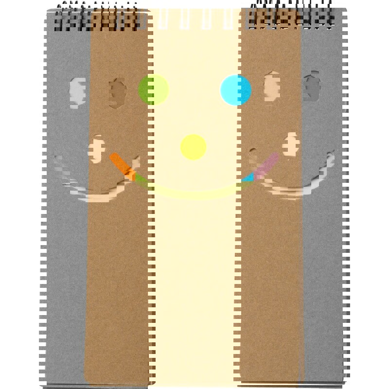 Notebook of cheerful emoji designs in eye-catching yellow color. With white rings, rigid cardboard covers in soft glossy finish and 40 blank sheets. Hard Cover. 40 Sheets