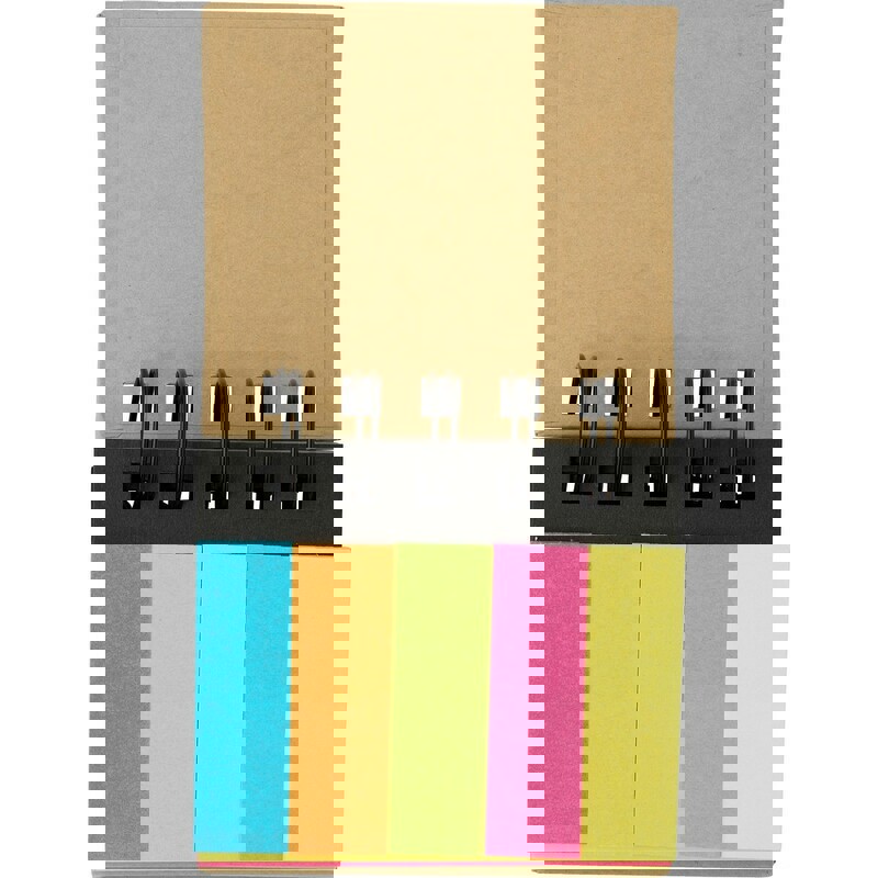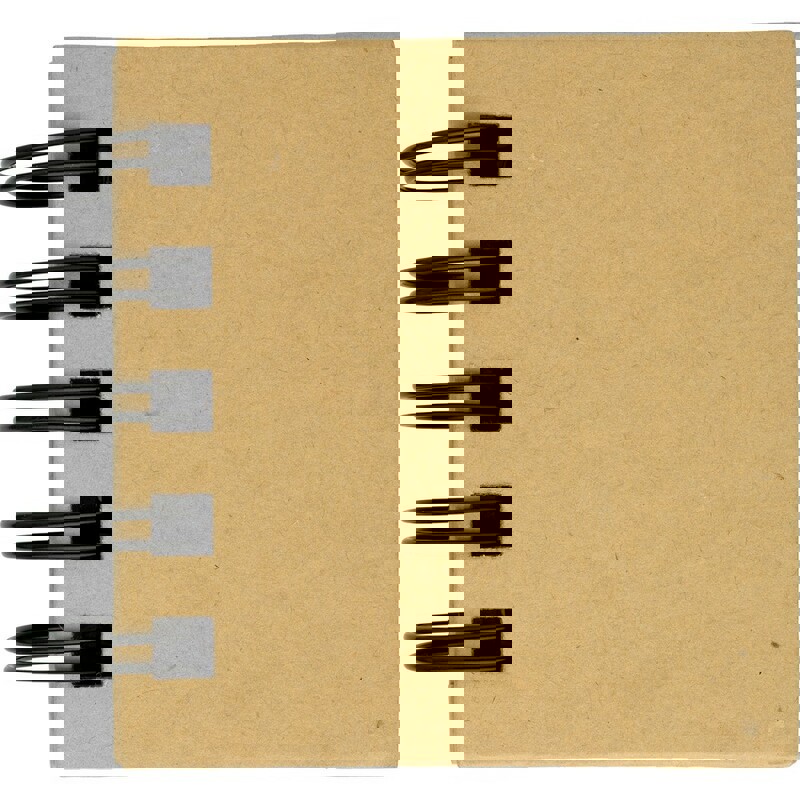 Sticky notepad with matching color recycled cardboard ball pen included. Original bicolor design, soft-touch covers with self-closing strip closure on matching color top and in resistant rigid recycled cardboard. With built-in ball pen holder on the side, 70 blank sheets, 25 large, 25 medium and 100 mini sticky notes. 70 Sheets Notepad. 25 Sticky Notes 7,6 x 9 cm. 25 Sticky Notes 3,8 x 6 cm. 100 Mini Sticky Notes 1,2 x 4,8 cm. Recycled Cardboard Pen Included