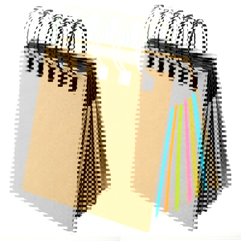 Sticky notepad with die-cut, soft-touch cover in recycled cardboard. 100 mini sticky notes. 100 Sticky Notes 1,5 x 5 cm