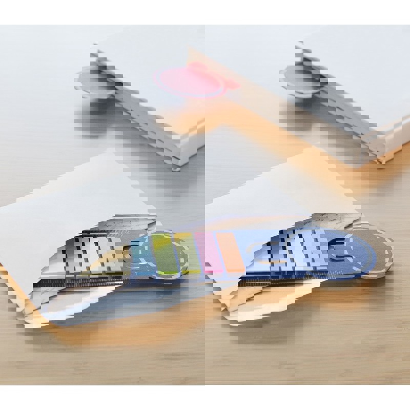 Note set with printed 13 cm / 5 inch ruler and a bookmark in one, special space for personalization ensures that logo or advertising message can remain visible even after inserting it into book, set also includes small sticky notes in 5 colours and notepad 4 x 4,5 cm, the product made of cardboard and paper