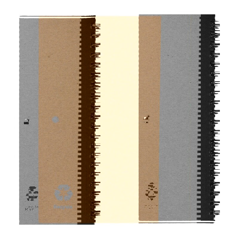 A5 notepad with hard cover in durable recycled cardboard. With 100 blank white sheets and elastic closing band. Available in a wide range of colors. Hard Cover. 96 Sheets