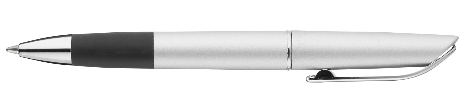 Twist ballpoint pen with housing in metallic colours and rubber grip zone in black. Metal clip, decorative ring and tip chrome plated.