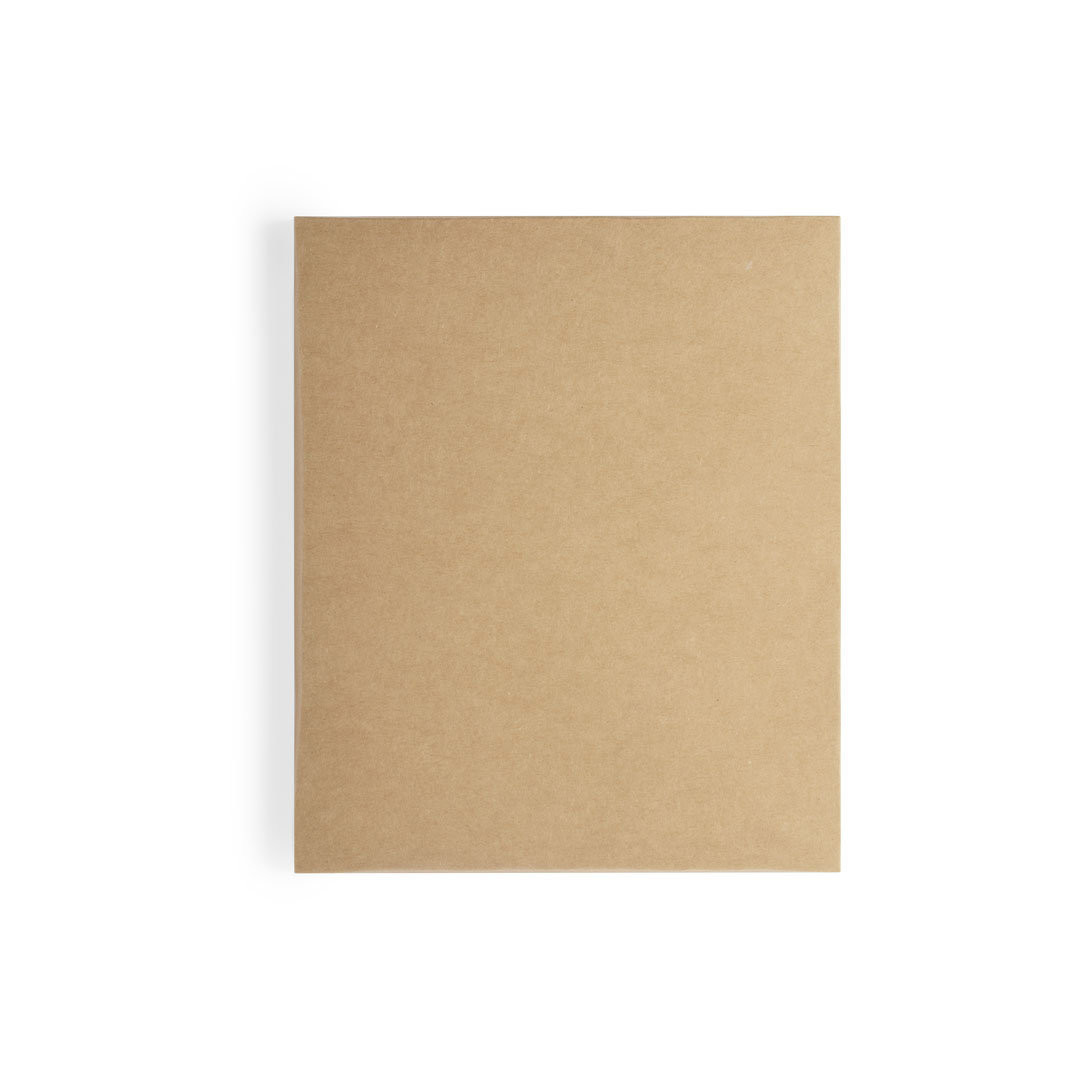 A5 notepad with hard cover in durable recycled cardboard. With 100 blank white sheets and elastic closing band. Available in a wide range of colors. Hard Cover. 96 Sheets
