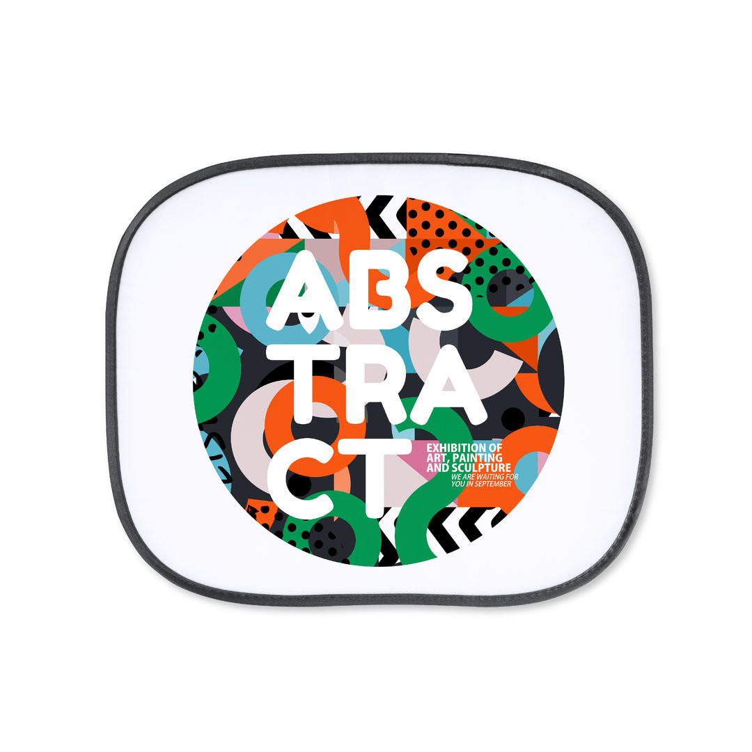Aluminum sunshade with bubble on both sides in silver metallic finish with black piping. Max. size 180x90cm, with metal reinforcement rings, elastic straps for folding, two suction cups for adjustment and presentation unfolded for easy printing.